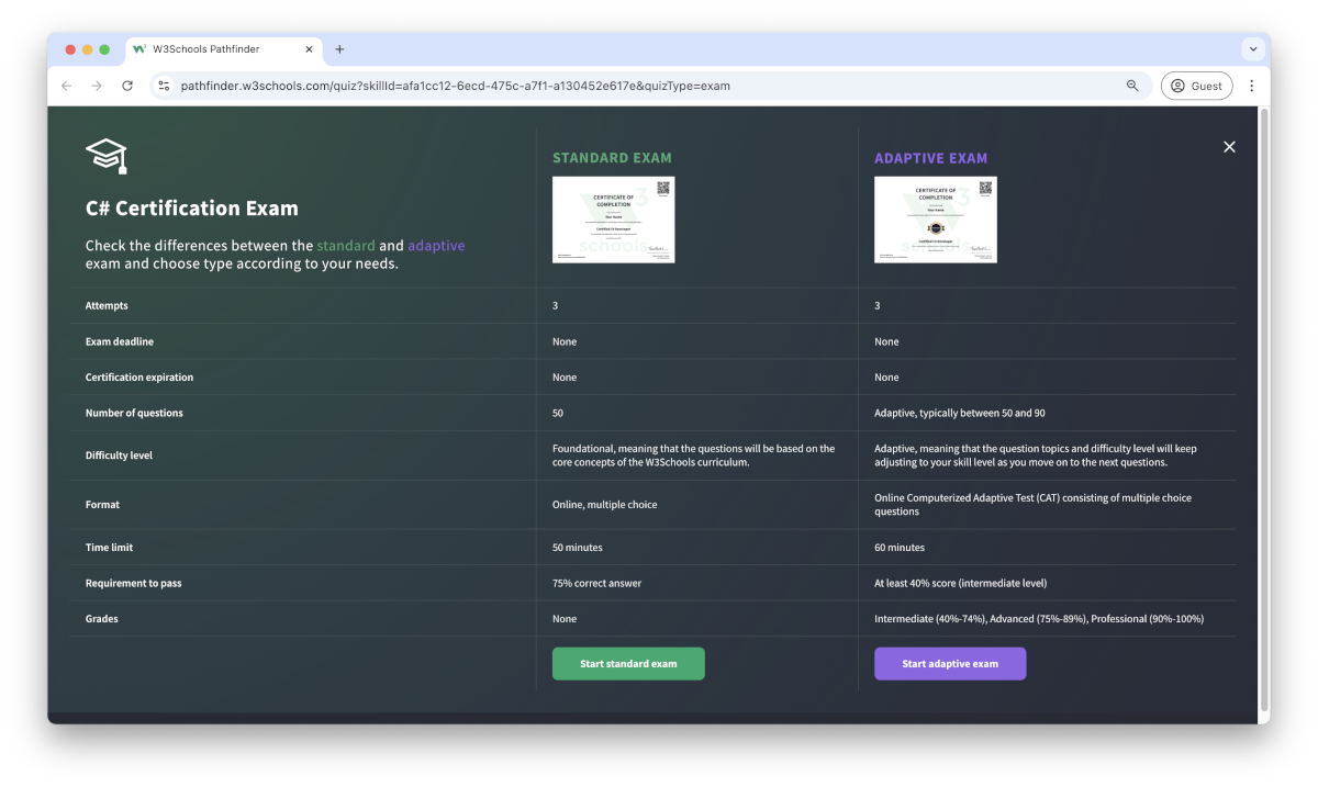 W3Schools offers an end-of-pathway certification program.