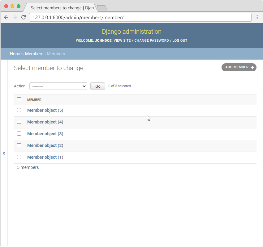 To include the Member model in the admin interface, we have to tell Django that this model should be visible in the admin interface.