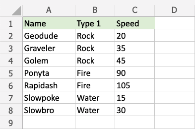 Let's see what happens if we add another fictional Pokemon that is faster than any of the other Pokemon: