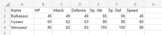 The outcome is this chart which has Bulbasaur evolutions on the horizontal axis.
