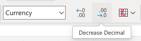 Note: Decreasing Decimals can make Excel round up or down numbers as more decimals get removed. This may be confusing if you are working on advanced calculations which require accurate numbers.