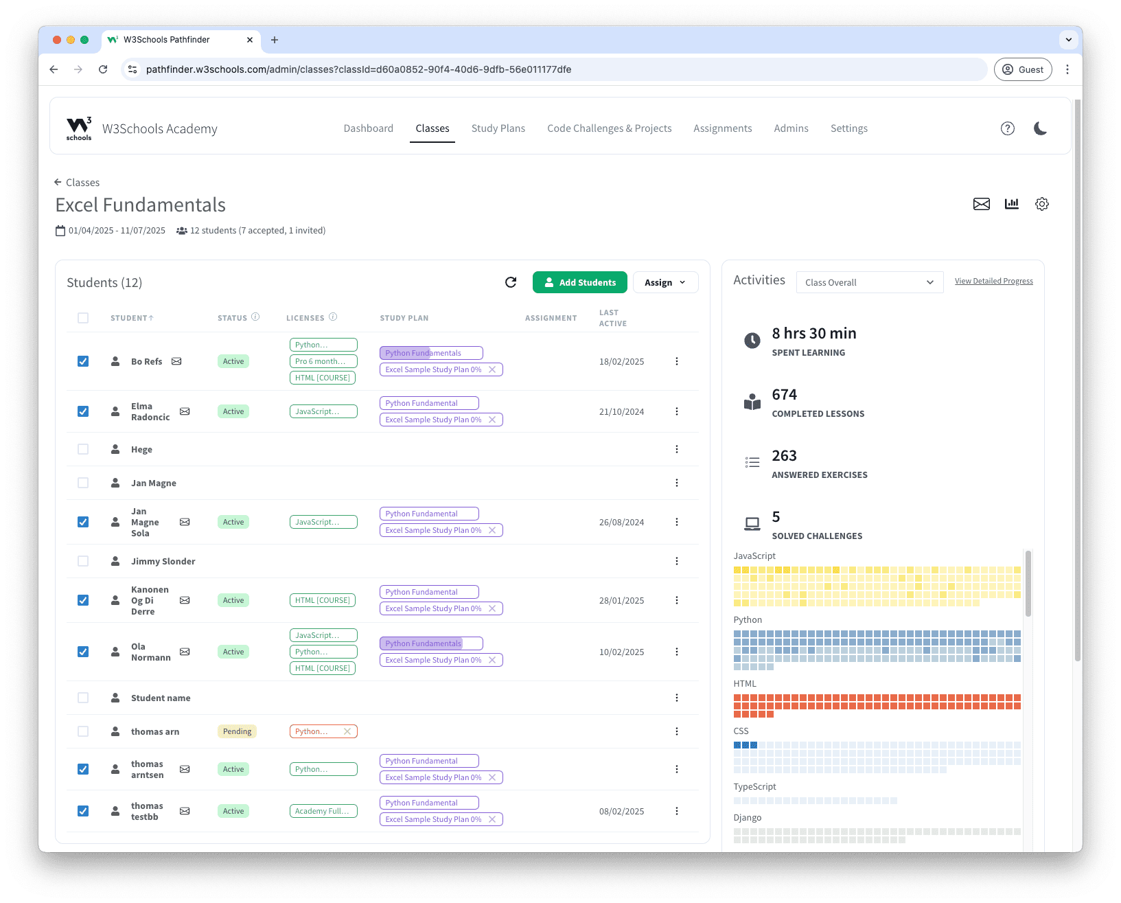 With W3Schools Academy you can manage everything from licenses to certificates.