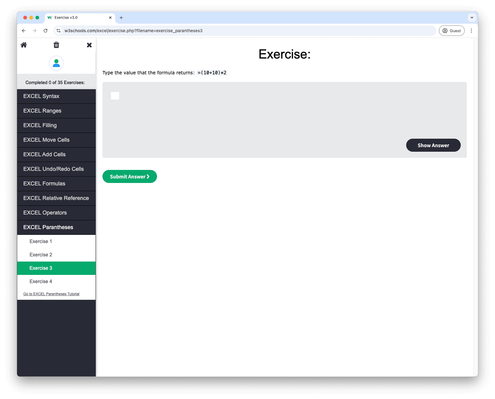 W3Schools offers an Excel training course that covers Excel foundations and more.