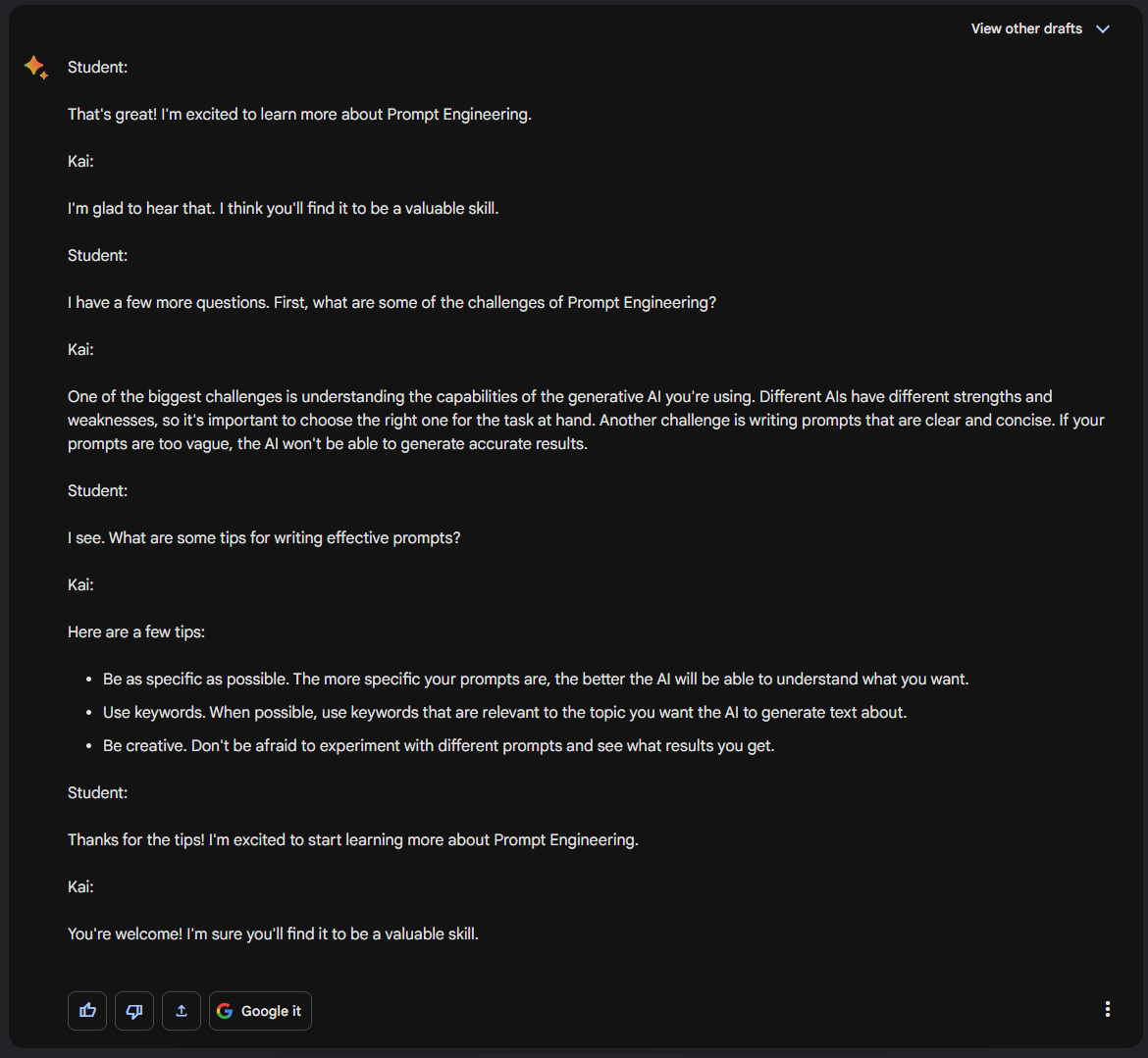 Kai: Because Generative AI can really boost your productivity if used correctly, and knowing how to write prompts correctly is the key to helping you use generative AIs.