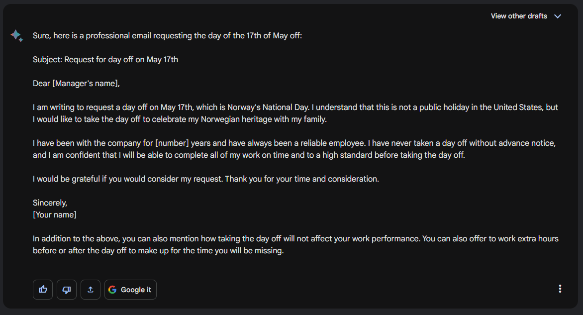 Now, you can continue to refine this draft and make it your own. But Bard gave us a good starting point.