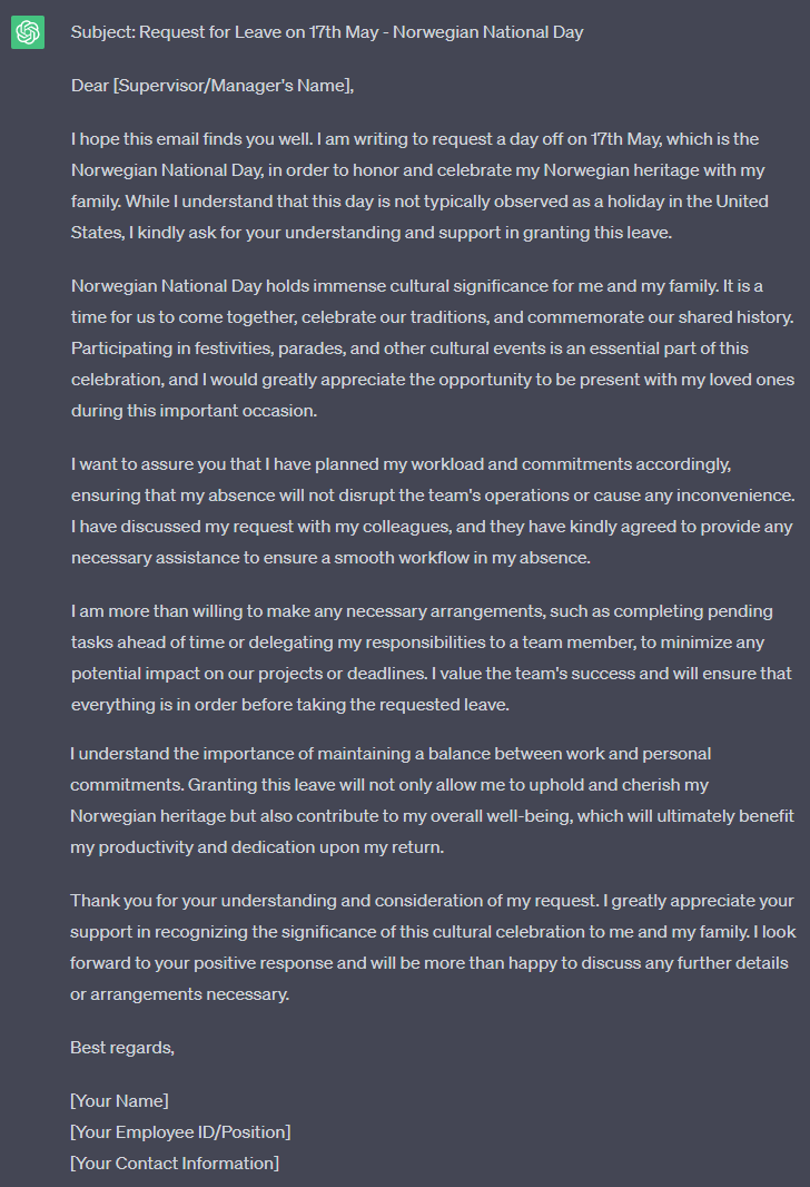 Now, you can continue to refine this draft and make it your own. But ChatGPT gave us a good starting point.