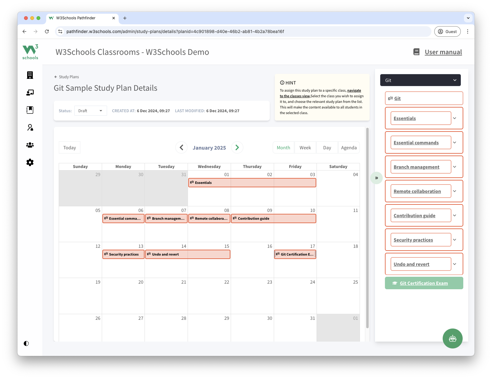 Save time with pre-built teacher materials and study plans. Easily organize your class with a timeline from the introduction of Git to the final exam.