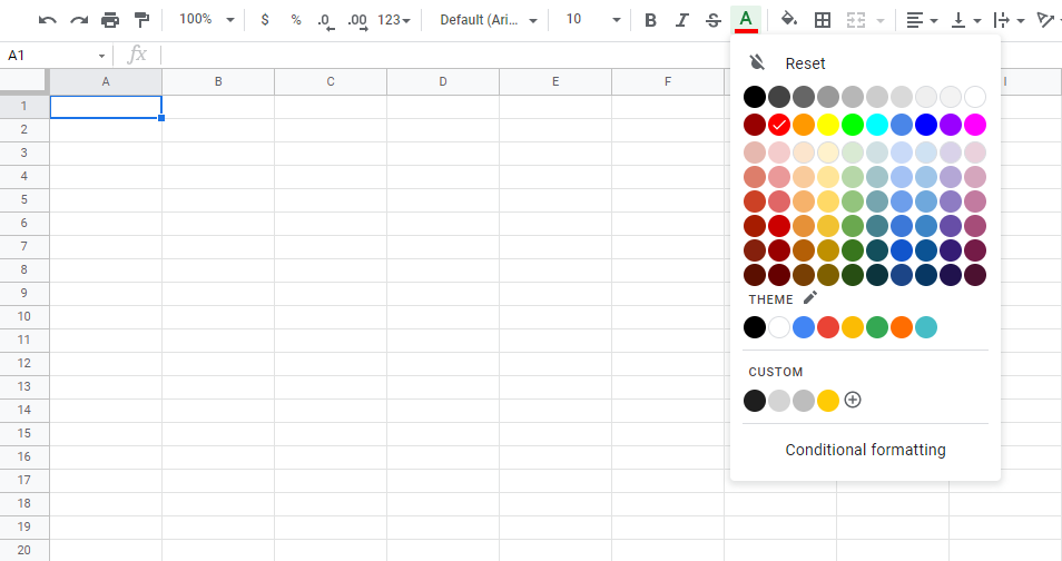 Google Sheets Format Font Color