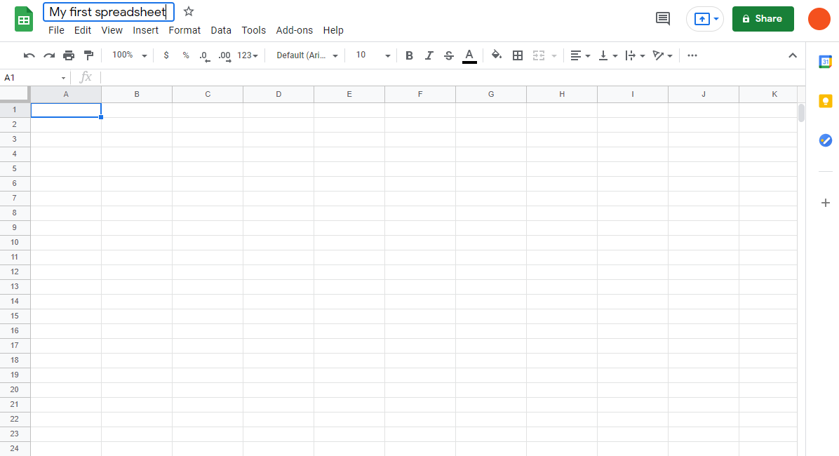 Once you have successfully logged in, you will land in Google Sheets' start Page. Click on the Blank button to get started with a new workbook.