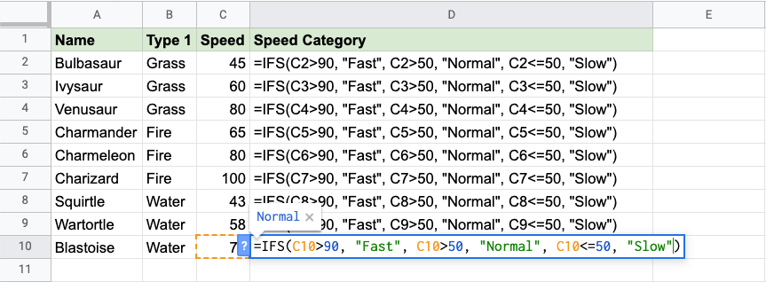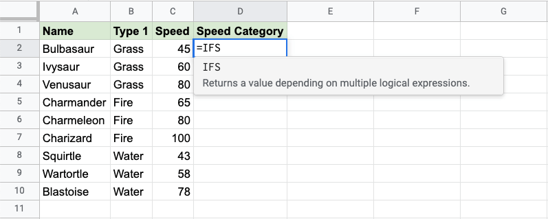 Google Sheets IFS Function