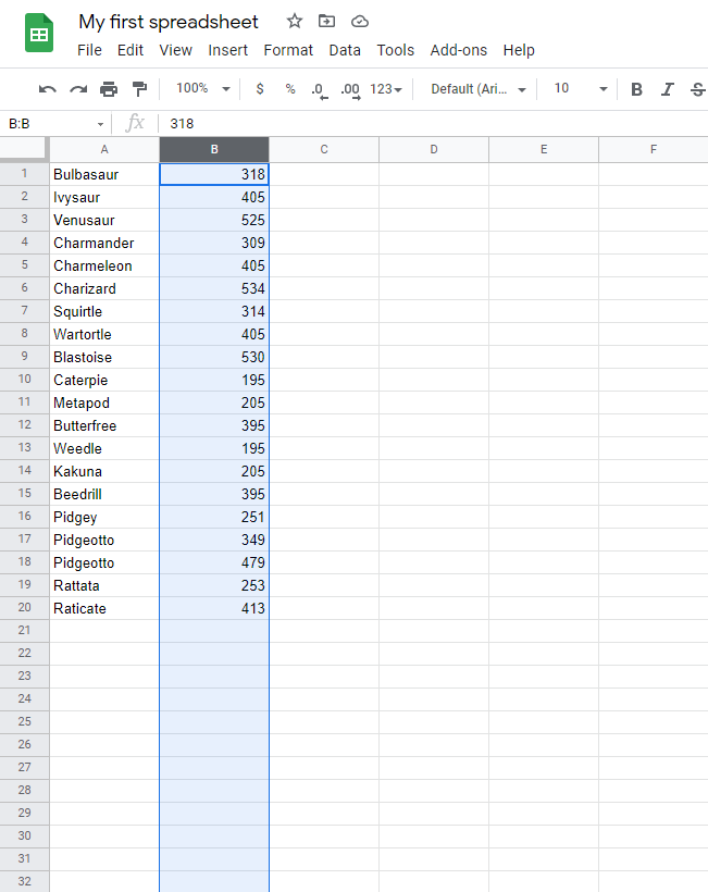 1. Select column B by clicking on the letter B in the column bar