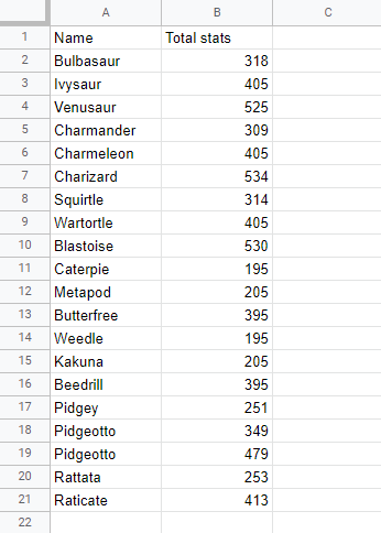 This example shows another way to sort Pokemon names in ascending order (from A to Z).