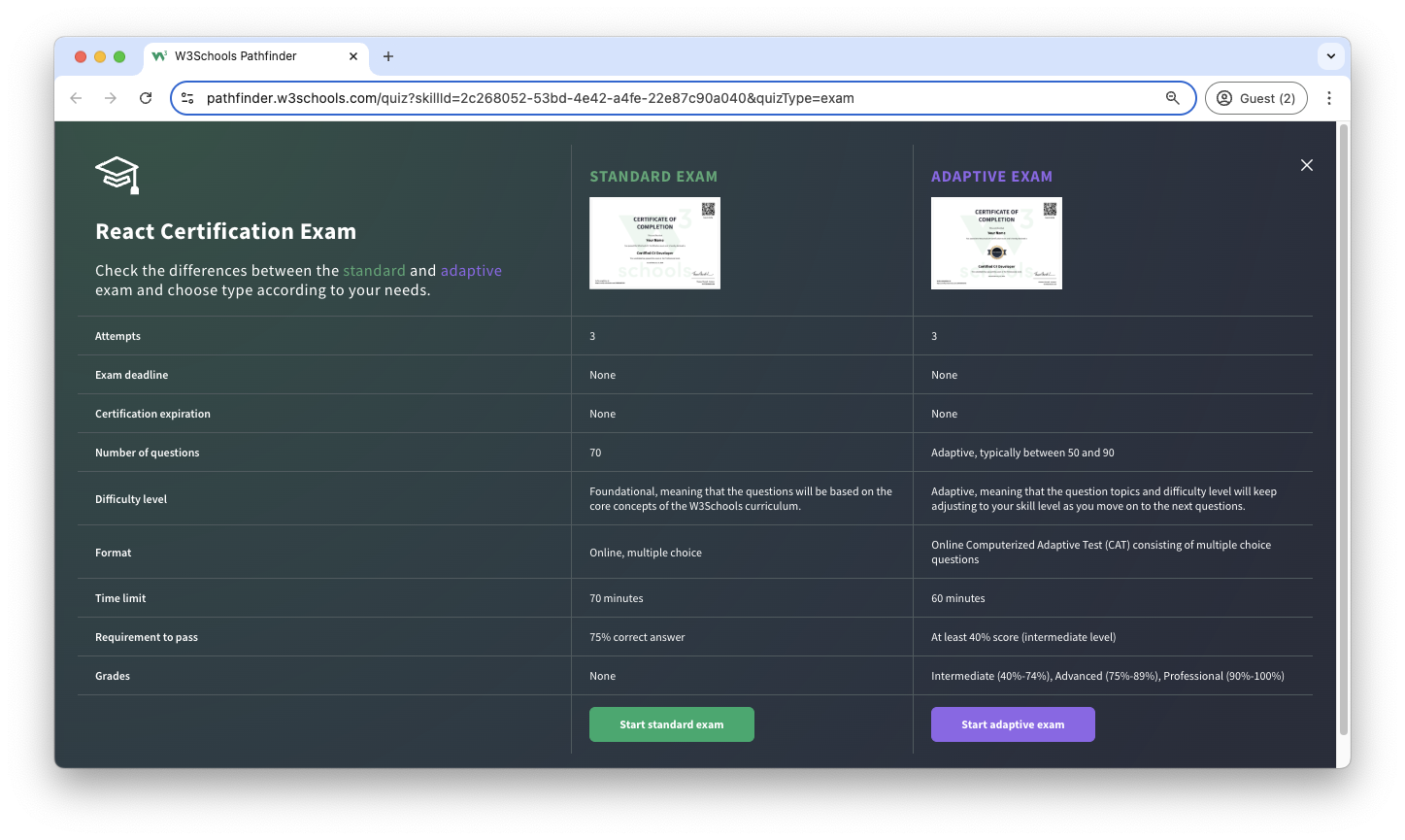 W3Schools offers an end-of-pathway certification program.